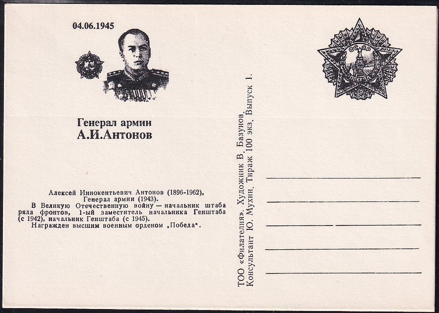 ПК. Генерал армии А. И. Антонов. ТОО "Филателия"