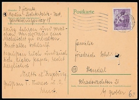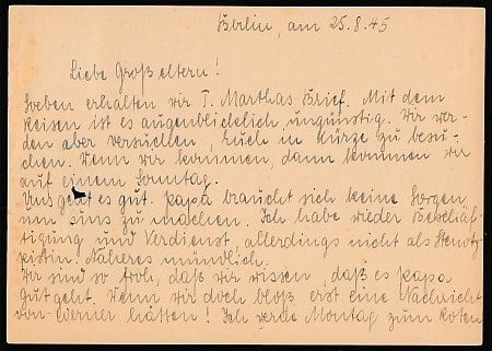 ПК Германии, прошла почту, гашение 26.08.1945 год, Берлин
