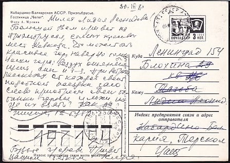 ПК "Кабардино-Балкарская АССР. Гостиница "Чегет". Выпуск 24.07.1978 год, прошла почту