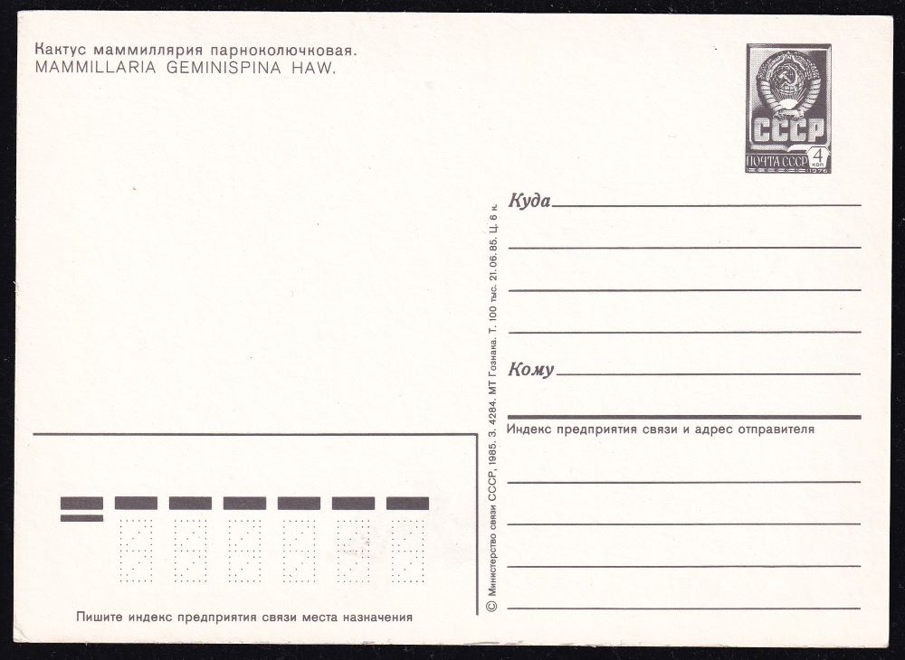 ПК. Кактус маммиллярия парноколючковая, 21.06.1985 год