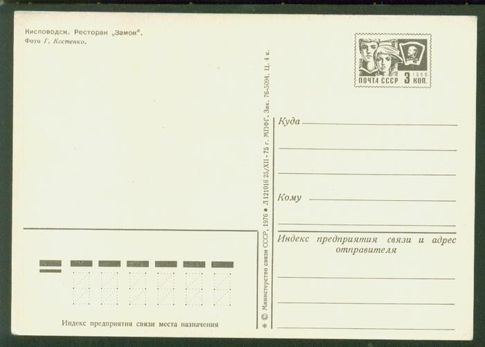 ПК Кисловодск. Ресторан "Замок". Выпуск 25.12.75 г. № 4809