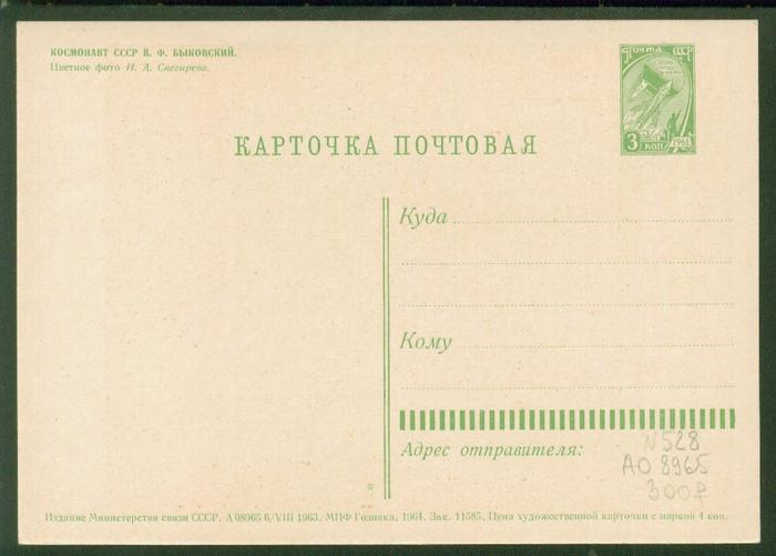 ПК Космонавт СССР В.Ф. Быковский. Выпуск 06.08.63 г. № 528