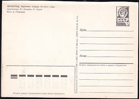 ПК Ленинград. Фрагмент ограды Летнего сада. Выпуск 29.10.1985 год