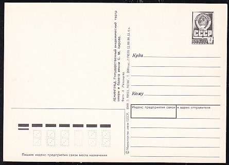 ПК Ленинград. Гос. академический театр оперы и балета. Выпуск 12.08.1988 год