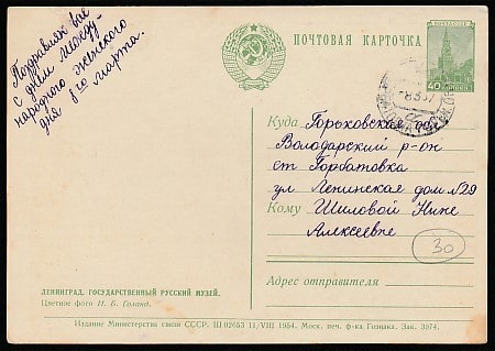 ПК. Ленинград. Государственный Русский музей, 11.08.1954 год, прошла почту