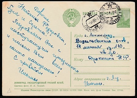 ПК. Ленинград. Государственный Русский музей, 16.08.1956 год, прошла почту