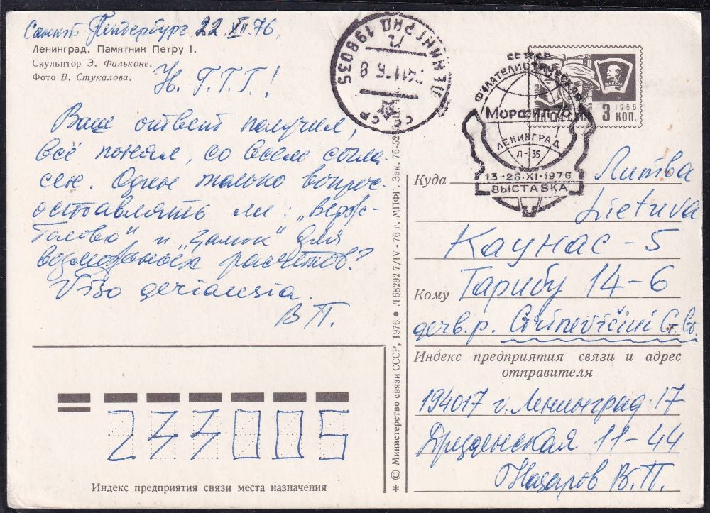 ПК Ленинград. Памятник Петру I, 7.04.1976 год, прошел почту