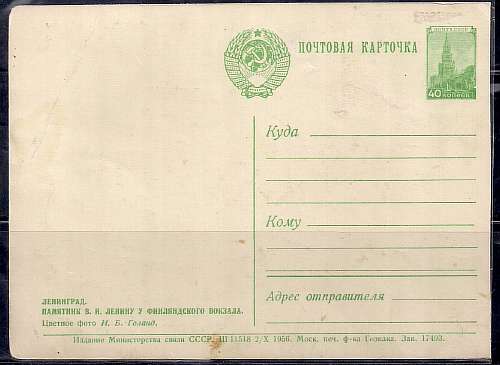 ПК. Ленинград. Памятник В.И. Ленину у Финляндского вокзала, № 223, 02.10.1956 год