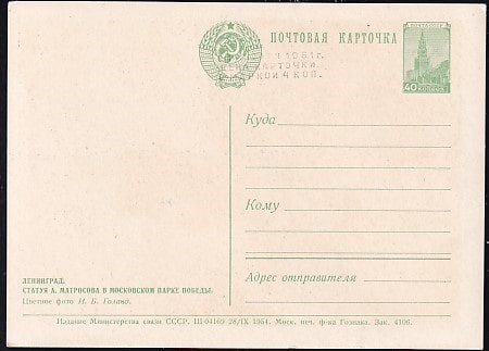 ПК Ленинград. Статуя А. Матросова в Московском Парке Победы. Выпуск 28.09.1954 год