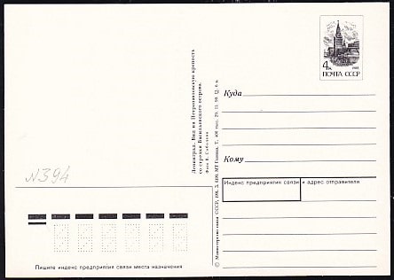 ПК Ленинград. Вид на Петропавловскую крепость со стрелки Васильевского о-ва. Выпуск 29.11.1990 год