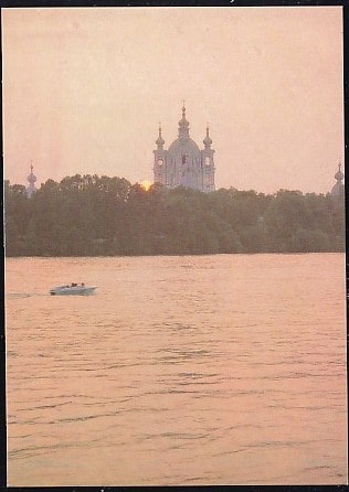 ПК Ленинград. Вид на Смольный собор через Неву. Выпуск 24.12.1990 год