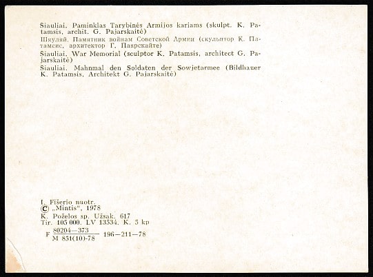 ПК. Литва. Шяуляй. Памятник воинам Советской Армии