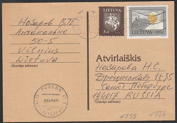 ПК Литвы. Визит Иоанна Павла II в Каунас, п/почту в 1998 году.