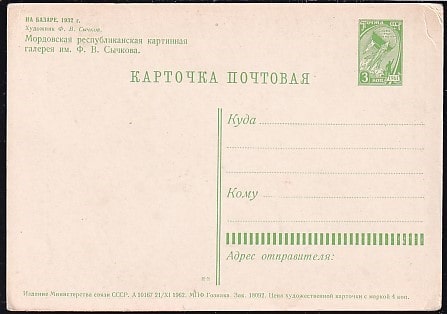 ПК "На базаре". 1932 г. (худ. Ф.В. Сычков). Выпуск 21.11.1962 год