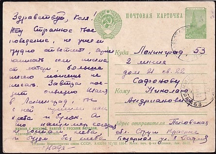 ПК "Навеки с Москвой, навеки с русским народом". Выпуск 17.03.1954 год, прошел почту