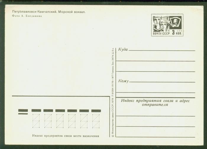 ПК Петропавловск-Камчатский. Морской вокзал. Выпуск 01.02.78 г. № 6275