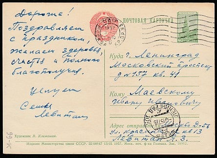 ПК. Поздравляю с праздником! 13.09.1957 год, прошла почту