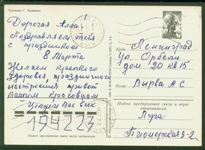 ПК п/п 8 Марта. Выпуск 20.02.81 г. № 1307