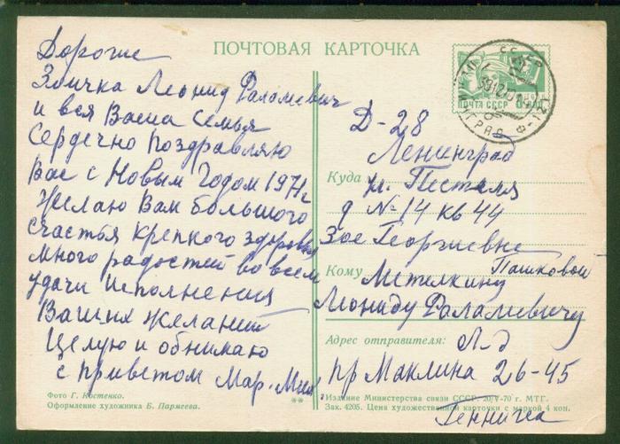 ПК п/п С Новым годом! (Г. Костенко) Выпуск 20.05.70 г. № 1571
