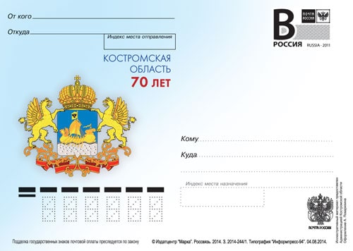 ПК с литерой "В" 2014 год. Костромская область. 70 лет (Ю)