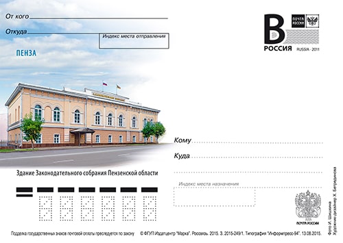 ПК с литерой "В" 2015 год. Пенза. Здание Законодательного собрания Пензенской области (Ю)