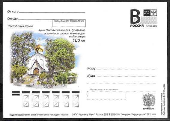 ПК с литерой "В". Храм Святителя Н. Чудотворца и мученицы царицы Александры в Массандре 100 лет, 28.11.2016 г.