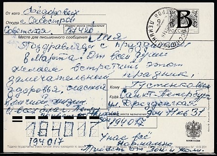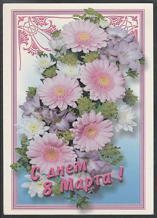 ПК с литерой "В". С днём 8 Марта! Герберы, 18.06.2001 год, прошла почту