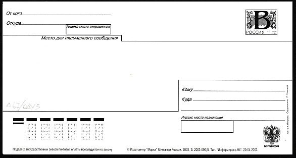 ПК с литерой "В". Северная Осетия. Владикавказ, 2003 год