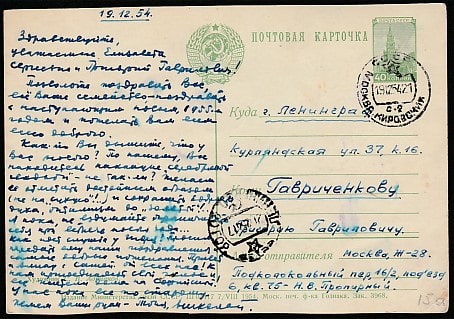 ПК. С Новым годом! 07.08.1954 год, прошла почту