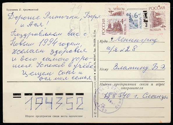 ПК. С Новым годом! (худ. Е. Аргутинский) 08.02.1979 год, п/почту.