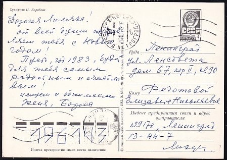 ПК С Новым годом! (худ. Н. Коробова) Выпуск 2.08.1982 год, прошла почту