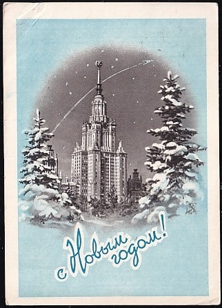 ПК С Новым годом! (худ. С. Поманский). Выпуск 1958 год, прошла почту. РАКЕТА