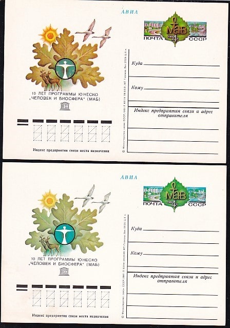 ПК с ОМ "10 лет программы ЮНЕСКО "Человек и Биосфера", 1981 год (разновидность цвета)
