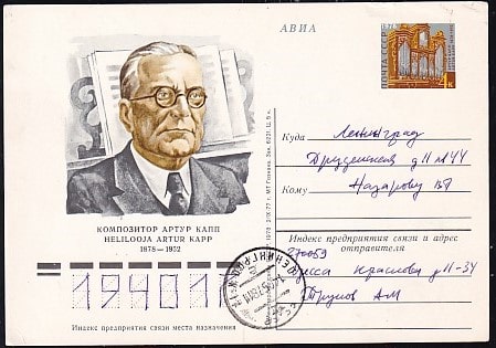 ПК с ОМ 100 лет со дня рождения А.Каппа. Выпуск 2.09.1977 год, прошла почту