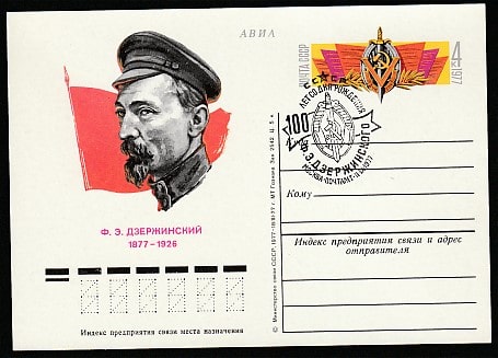 ПК с ОМ. 100 лет со дня рождения Ф.Э. Дзержинского, № 49, СГ 11.09.1977 год, Москва, почтамт.