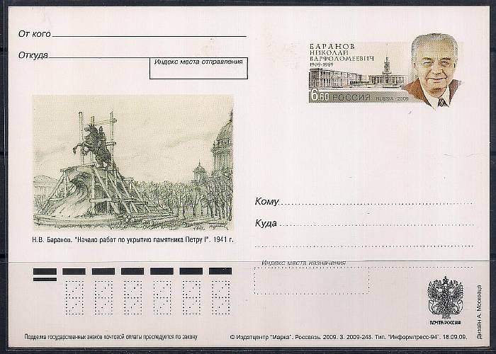ПК с ОМ. 100 лет со дня рождения Н.В. Баранова, архитектора, 2009 год, № 201