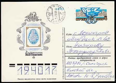 ПК с ОМ. 120 лет первой русской почтовой марке, 1978 год, прошла почту