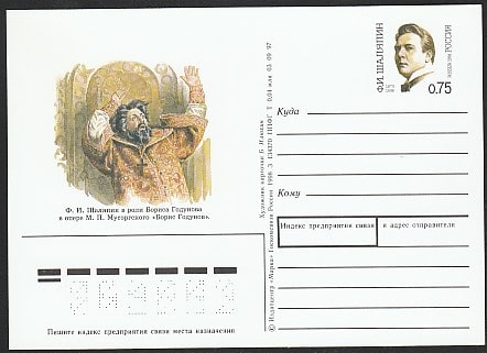 ПК с ОМ. 125 лет со дня рождения певца Ф.И. Шаляпина, 1998 год, № 76