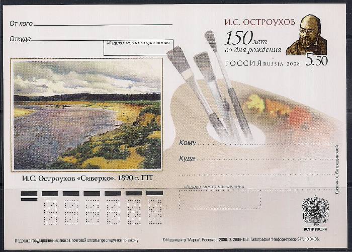 ПК с ОМ. 150 лет со дня рождения И.С. Остроухова, живописца, 2008 год, № 188
