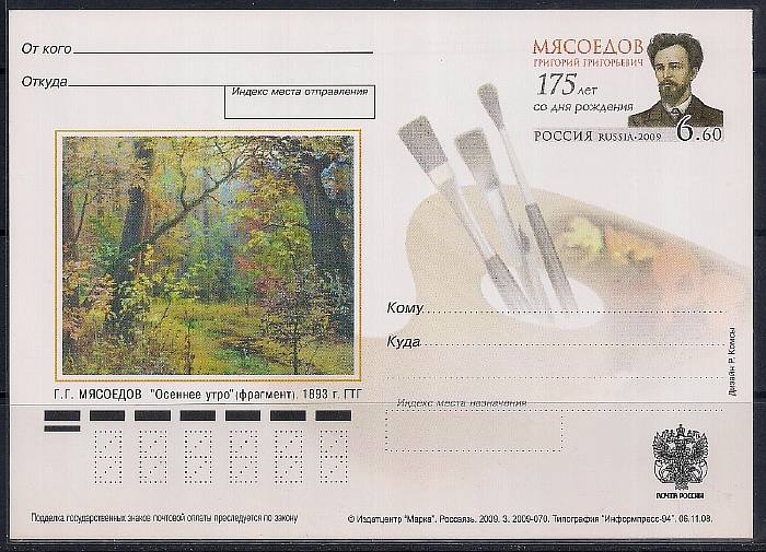 ПК с ОМ. 175 лет со дня рождения Г. Г. Мясоедова, живописца, 2009 год, № 195