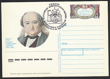 ПК с ОМ. 200 лет со дня рождения актёра М.С. Щепкина, № 181, СГ 22-31.05.1998 год, Всероссийская филвыставка "Православие и культура-98", Новгород, почтамт