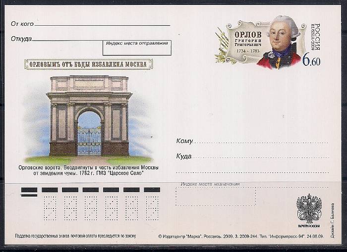 ПК с ОМ. 275 лет со дня рождения Г.Г. Орлова, русского военного и государственного деятеля, 2009 год, № 198