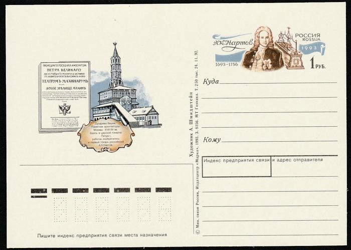 ПК с ОМ. 300 лет со дня рождения механика А.К. Нартова. 1993 г. № 11