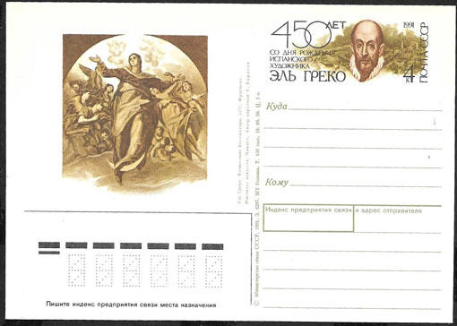 ПК с ОМ 450 лет со дня рождения Эль Греко 1991 год. № 223