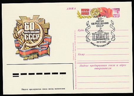 ПК с ОМ. 60 лет образования СССР, № 110, спецгашение, 30.12.1982 год, Киев, почтамт