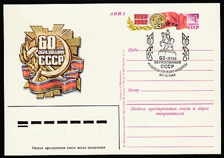ПК с ОМ. 60 лет образования СССР, № 110, спецгашение, 30.12.1982 год, Кишинёв, почтамт