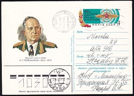 ПК с ОМ 80 лет со дня рождения И.Т. Пересыпкина. Выпуск 21.09.1983 год, прошла почту