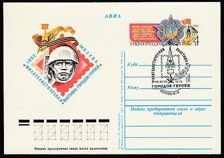 ПК с ОМ. Филвыставка городов - героев в Москве, № 102, спецгашение, 08-22.05.1982 год, Москва, К-3