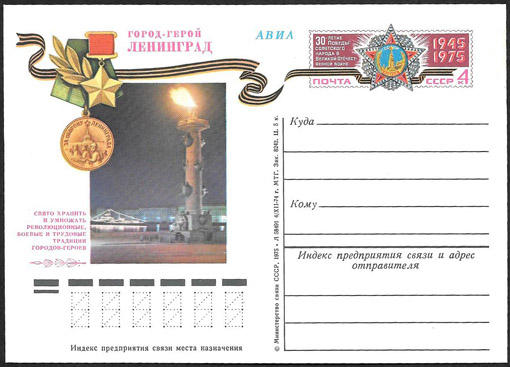 ПК с ОМ Город - герой Ленинград 1975 г. № 21