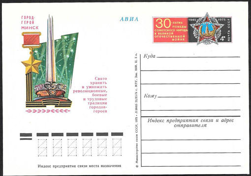 ПК с ОМ Город - герой Минск 1975 год. № 23